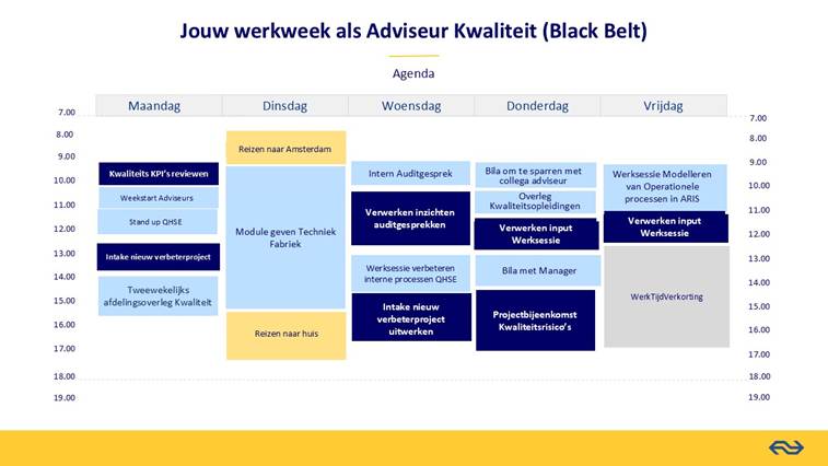 Benieuwd hoe jouw werkweek eruit kan zien bij NS? Wij geven je een voorbeeld van jouw toekomstige agenda.